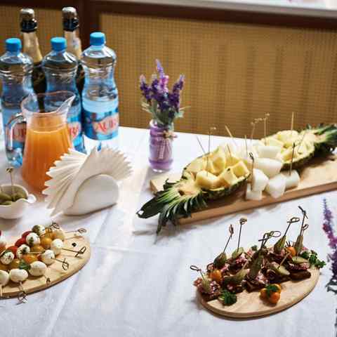 При проведении банкета в банкетном зале «Версаль» сможет комфортно разместиться до 60 гостей. Кроме того, здесь готовы обслужить и небольшие компании на 15-20 человек. Просторный зал правильной геометрической формы позволяет свободно расставить столы по желанию клиента, также есть место для танцпола и артистов.